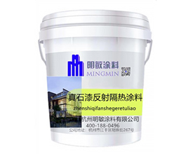 明敏多彩反射隔热涂料:也称反射隔热多彩漆、反射隔热多彩涂料等,由多种功能材料复合体系外墙功能涂料,采用国内、外多种具有高反射、红外发射纳米材料和红外颜料调色,与普通多彩涂料有着不同的反射隔热功能。涂膜有很好的太阳热反射作用,达到节能效果,并且不失仿石材涂料美观效果。多彩反射隔热涂料,有效反射太阳可见光和远红外光波400-2700nm波长范围进行反射作用,减少太阳热被墙体吸收传递到室内,从而达到反射隔热节能效果。符合环保要求,施工无公害,是一种绿色环保建材,特别适用既有建筑节能改造、提高城市现代化环境,让旧建筑焕然一新,提升城市品位的外墙装饰功能涂料。执行标准:JG/T235-2014,JGJ/T359-2015、JGJ 144-2010,HG/T4343-2012,GB/T24408-2009标准.明敏反射隔热涂料获得浙江省、安徽省、湖南省建筑节能新技术、工艺、材料、设备推广应用证书,多功能保温底料、反射隔热涂料配套使用,满足建筑节能65%要求标准。