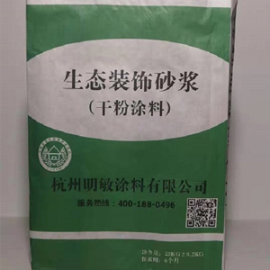 明敏装饰砂浆:又称饰面砂浆、彩色饰面砂浆、外墙饰面砂浆等,一般称饰面砂浆或干粉涂料,以无机凝胶材料、高分子聚合物、减水剂、保水剂等添加剂,配以优质矿物骨料、填料和无机颜料精制而成。产品所用颜料系天然氧化铁矿物颜料,耐候性和保色性非常优越,可全面保护建筑物免受自然环境、酸雨及微生物的侵蚀、破坏,装饰砂浆寿命长达50年,延长建筑物的使用寿命,并且装饰砂浆可于建筑物同寿命。可满足建筑审美需要和装饰效果,替代外墙涂料、面砖、干挂石材并与之相媲美。《建筑饰面砂浆 》JC/T1024-2007、JGJ/T359-2015,JGJ 144-2010,GB/T24408-2009《建筑工程施工质量验收统一标准》《建筑装饰装修工程质量验收规范》经先进的配方工艺精制而成,明敏装饰砂浆不泛碱,产品具有优异的耐水性,耐碱性,耐沾污性和耐候性,憎水透气,有效防止细小裂缝,赋予建筑物高雅华丽的外表,具有非常好的装饰效果。饰面砂浆原自欧洲风格建筑,通过技术引进把饰面砂浆带到建筑行业,厚重的装饰效果。广泛用于别墅、公共建筑、学校建筑艺术魅力,饰面砂浆;有耐老化的优异特点,对于城市旧城改造、立面翻新,节约了翻新的成本、并缩短了翻新周期。
